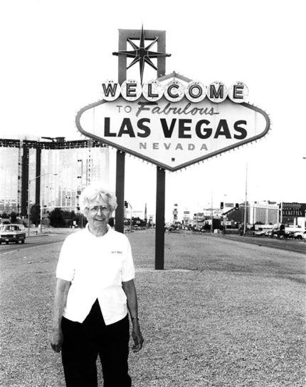 Betty Willis, who designed the sign, poses in front of it for a real photographer in 1998. (Image: Las Vegas News Bureau)Don’t listen to the scammers. Don’t let them touch your phone. And especially don’t tip them after refusing to take their bait.
